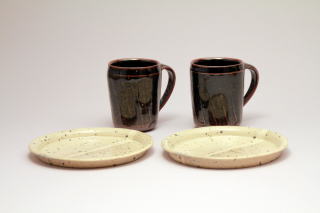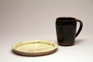 粉引平皿 (16*2) 鉄釉そぎめマグカップ (8*10)